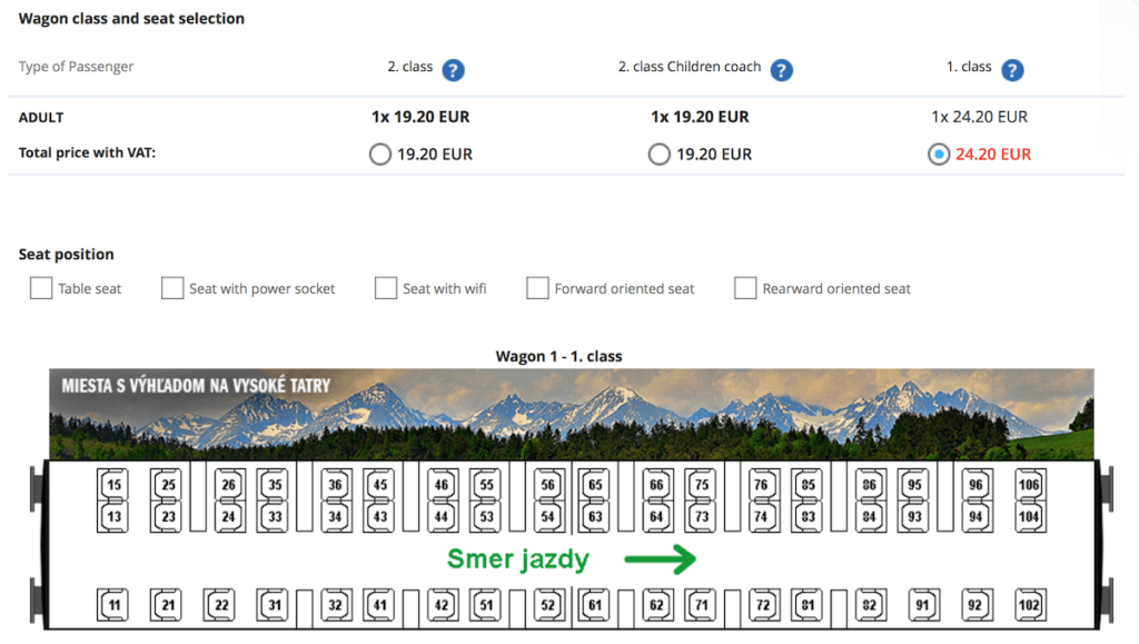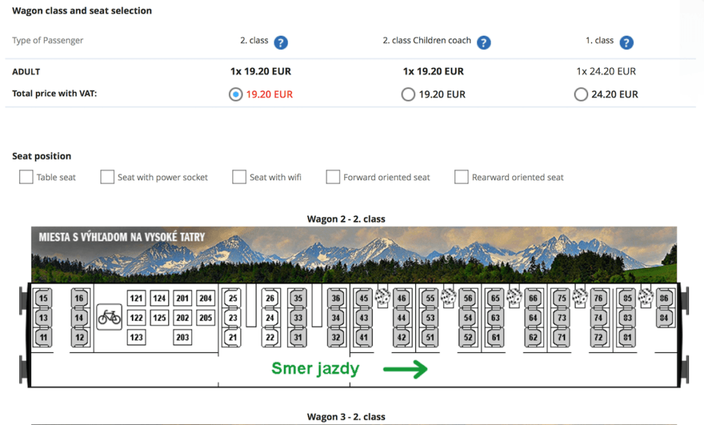 ZSSKのほとんどの鉄道は全席自由席となっており、事前予約は必要ありません。