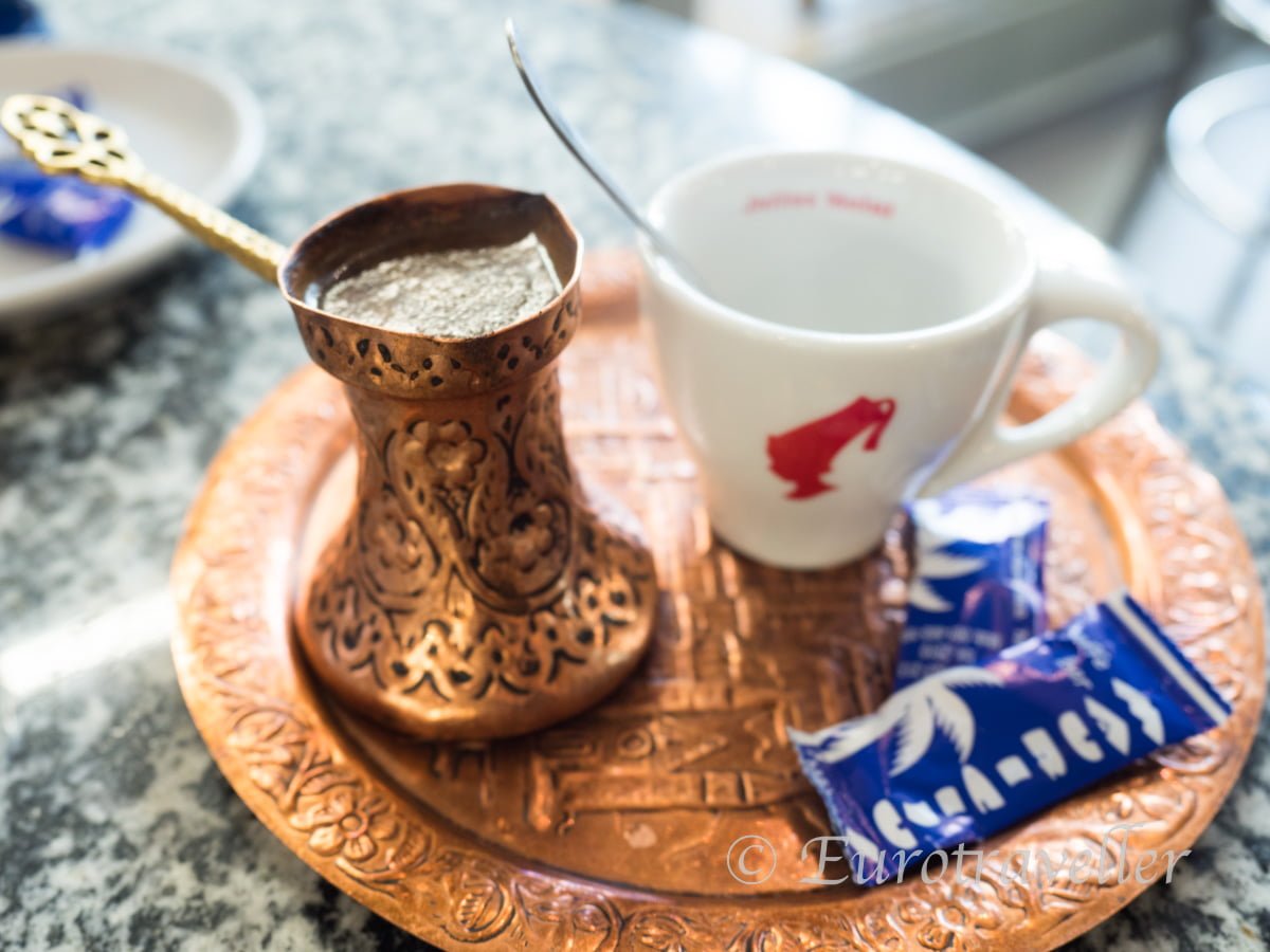 チーズ(Travnički sir)、生ハム(Pršut)、そして揚げパンのような食感のローカルドーナツ(Uštipci)、そして忘れてはいけないボスニアコーヒーです。