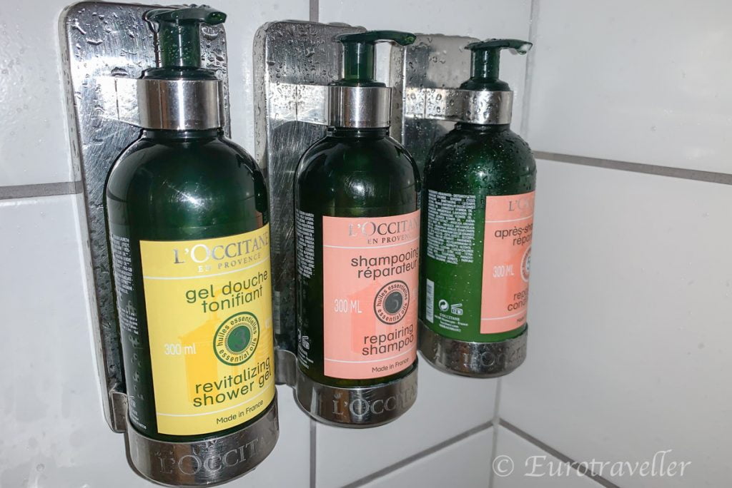 シャンプーやボディソープはロクシタンのもので統一。十分な数のタオルも用意されており、朝夜シャワーを浴びる場合であっても新しいタオルを使うことができます。