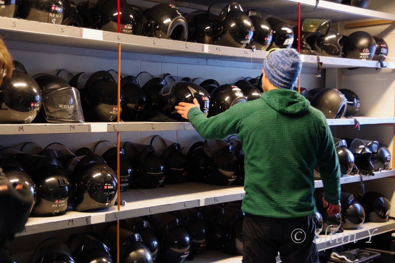 モービル基地に到着すると、まずは出発前のブリーフィングを行います。簡単な自己紹介の後、基本的なモービルの操作方法や運転時の姿勢について、安全面に重点を置いた説明が20分程度。