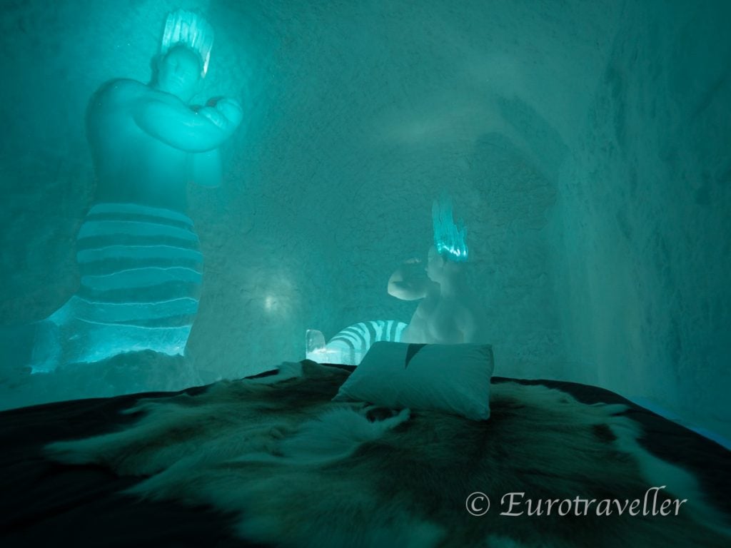 アイスホテルのコールドルームは毎年約40人の氷の彫刻家やデザイナーによって製作されるため、各部屋それぞれ特徴があり同じものは1つとしてありません。