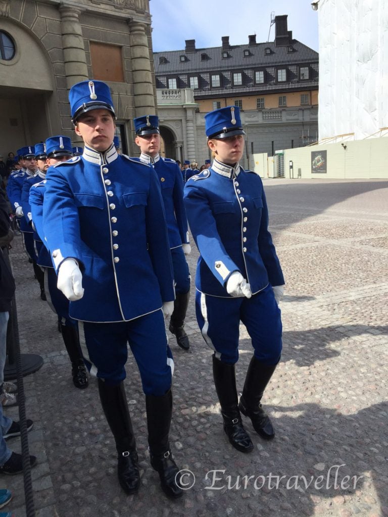 衛兵交代式というとバッキンガム宮殿等イギリスのイメージが強いですが、ここストックホルム宮殿の交代式も16世紀から続く伝統となっています。