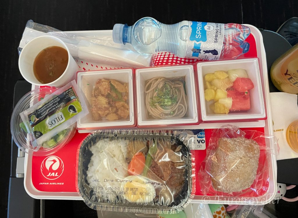 食事はCAの方が全乗客から希望を聞いた上で配膳するスタイルで、カートを使って各席をまわるというような通常での対応とは異なるものでした。