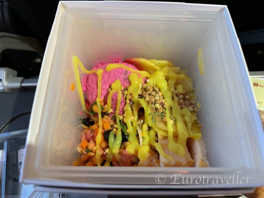こちらは飛行時間2時間半の欧州域内国際線であるため、サービスの質と量が国内線と比較しても充実したものになっていました。