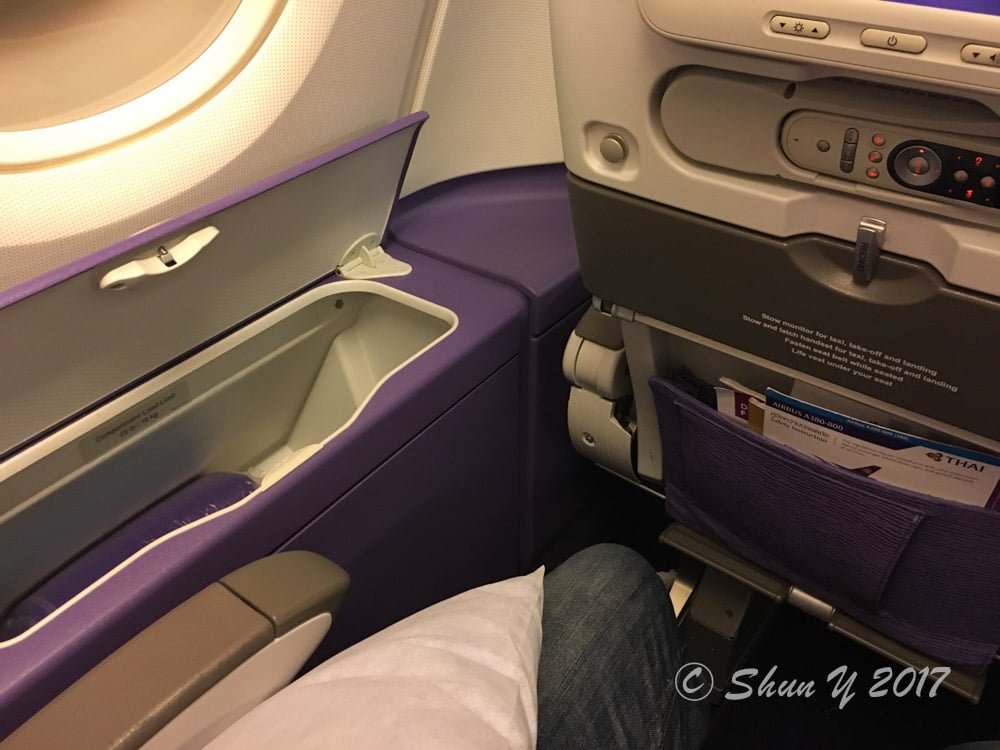 この窓側座席のいいところは、なんとシートと窓の間にサイド収納が設置されているところ。ハンドバッグやラップトップコンピュータなどはこちらに収納可能です。