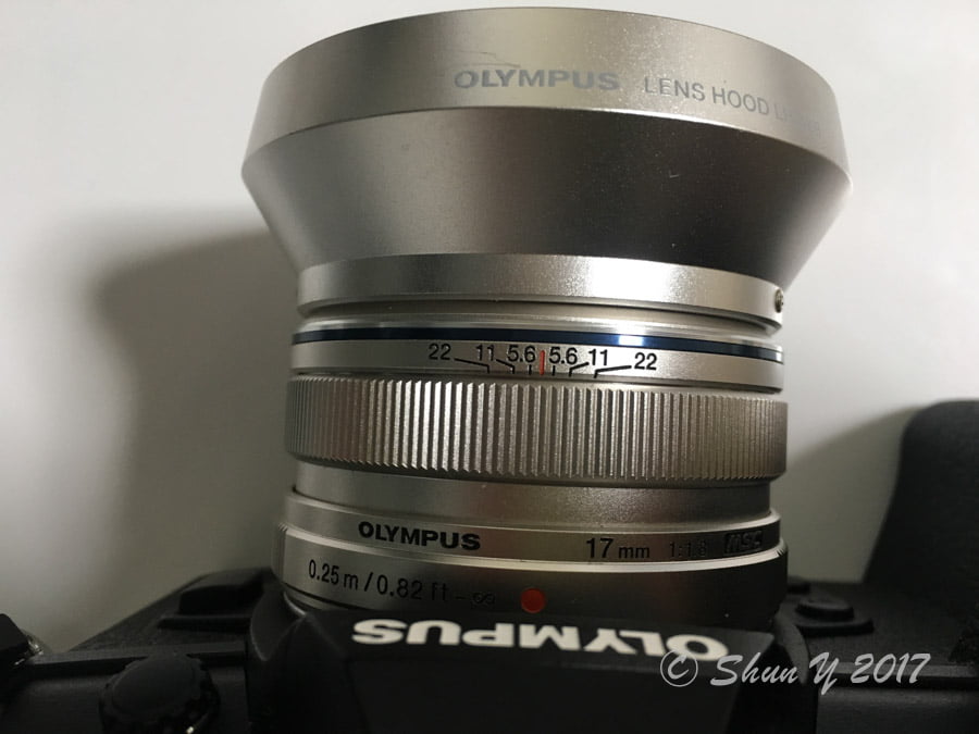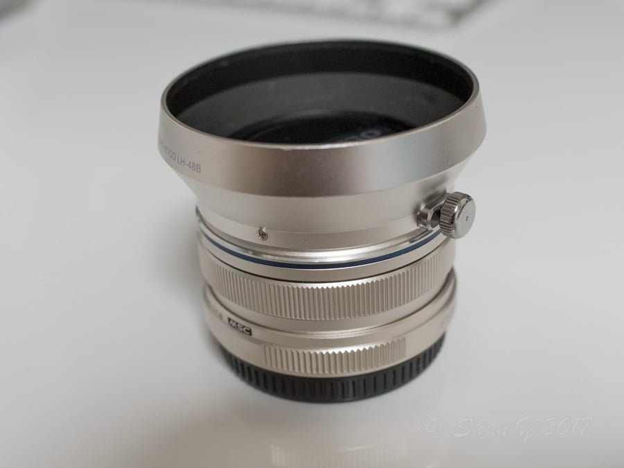 このレンズにはフードは同封されていないため、別売りの17mm F1.8用フードLH-48Bを購入しておきました。さすが純正、デザイン・質感ともにぴったりです。