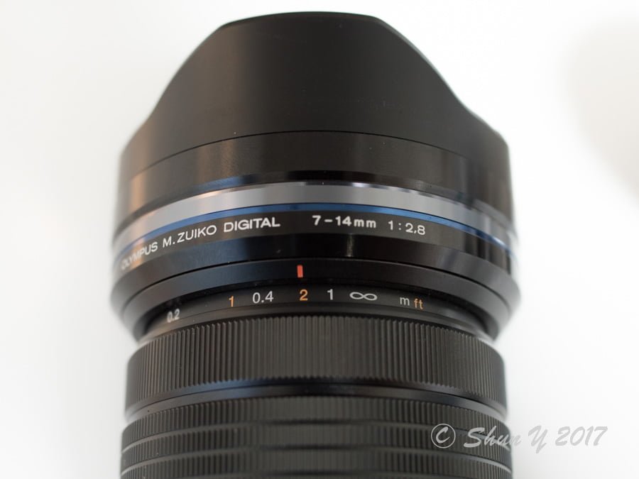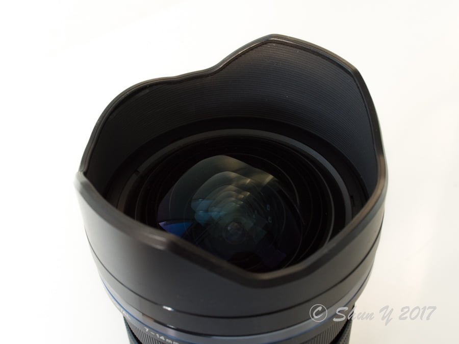 焦点距離7mmの時点では花形レンズフードよりもさらに前玉が前方に繰り出すため、取り扱いには注意が必要。レンズキャップを外したまま移動する際等には常に14mmの位置にしておくことをオススメします。