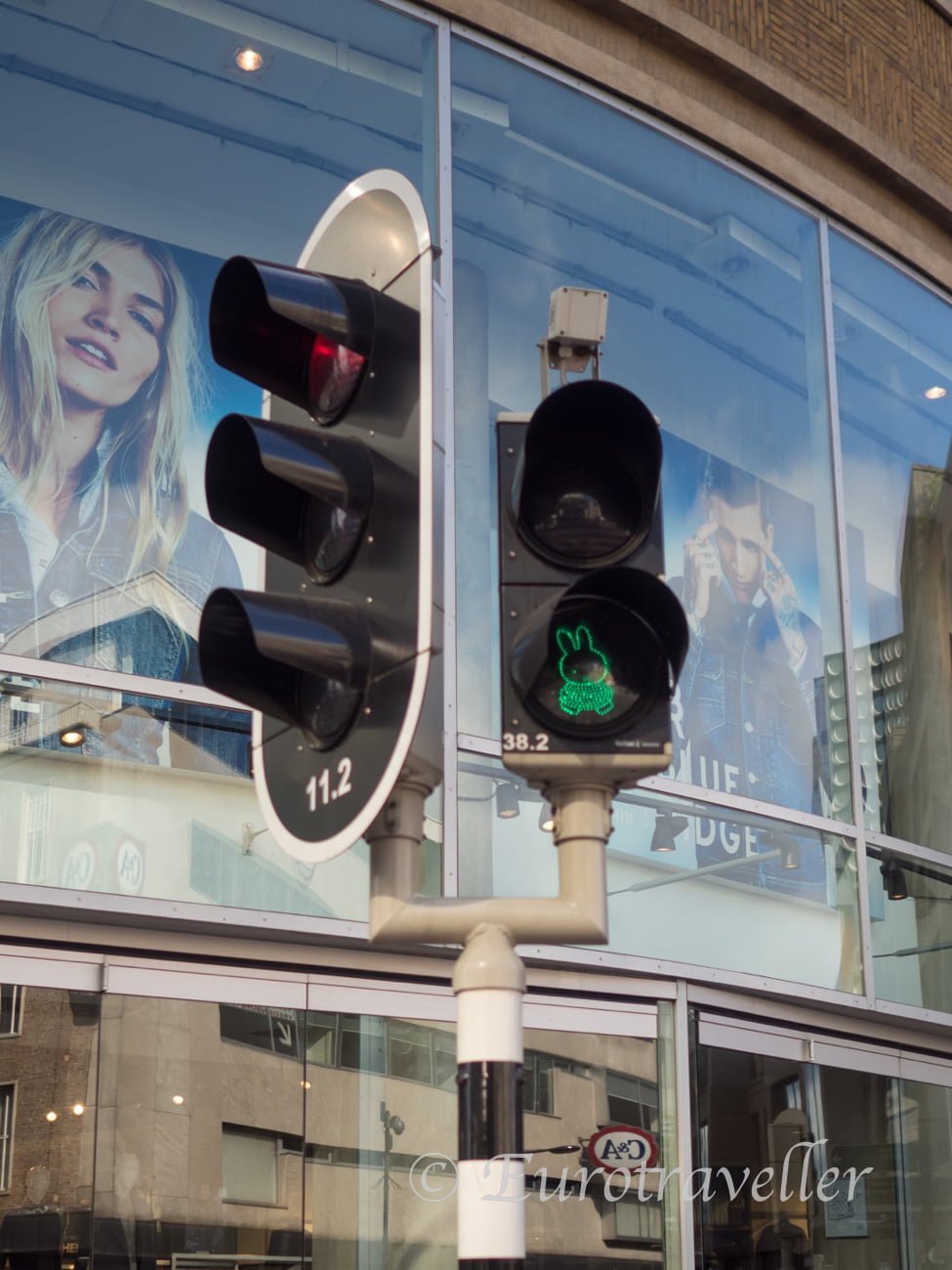 ここユトレヒトでは、信号の「人の絵」の代わりにミッフィーが使われているものがあります。もちろんミッフィーが信号機に使われているのは世界でここだけ。