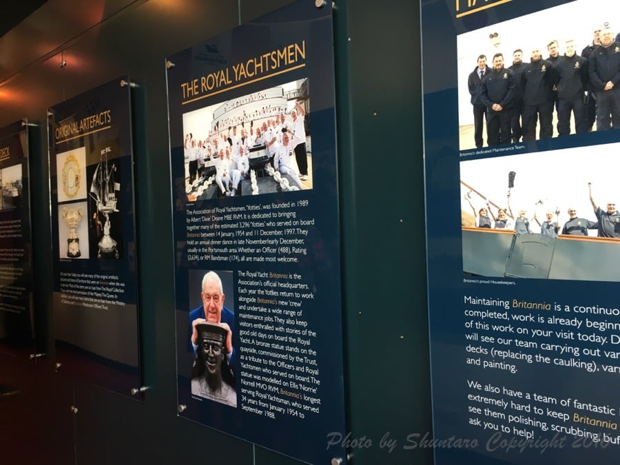 入場料を購入した後は船に乗り込む前に簡単なブリタニア号に関する展示があります。主にブリタニア号の航行の記録や、外遊先でのこと、ロイヤルファミリーに関することなど、「ザ・英国」を感じられる展示となっています。