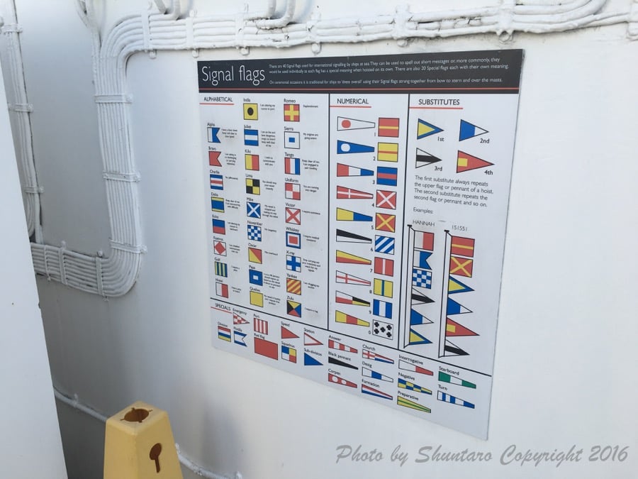 デッキ部分はこの規模の船としては特にこれといった特徴はありませんが、実際に使われていた当時のそのまま保存されていることから、モールス信号の発信や旗を使ったシグナルの出し方等、船の航行に必要な装備がそのまま残っています。